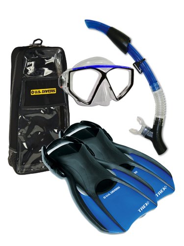 Fits most average adult faces. Fin size fits men's 7-10. Our top-quality line of dive products, the Professional Tech Series masks are designed to provide ultimate comfort, contemporary styling, as well as offer great features. All Pro Tech Series masks have hypoallergenic silicone face skirts and straps, providing great comfort combined with long-lasting durability. All models are designed to fit adults and most kids 12 and up.Captain 2 Silicone Mask: One size fits all face skirt fits a wide range of faces Hypoallergenic, silicone face skirt provides ultimate comfort Two-window low volume design Features sleek, super-slim frame design Easy-adjusting, swivel buckle Hydroair Semi-Dry Snorkel: Features hypoallergenic premium silicone mouthpiece for added comfort Drop-away, full-flex section to enhance performance and make snorkeling more comfortable - the snorkel conforms to your face shape, not the other way around Semi-dry top keeps splashed water out by forcing it to flow around the outside of the snorkel instead of the inside Easy-clear purge valve to drain any water that does get in when you submerge completely Trek Adjustable Short-Bladed Fins: Dual-composite fin blade for excellent snap, power and styling Compact length is great as a travel snorkeling fin and for other water sports activities Super-soft and comfortable foot pocket Adjustable foot strap to fine tune fit Total length of fins is 15 inches FREE Bonus extras: Mesh drawstring tote bag with adjustable single-shoulder backpack strap and internal hook-and-loop strap to hold the snorkel in place. Easily carry and store your gear! Bag is two sided - wear it with the waterproof plastic side against your back when your gear is wet, and let your snorkel gear air dry. Snorkeling tips DVD to help you get the most of your snorkeling trip